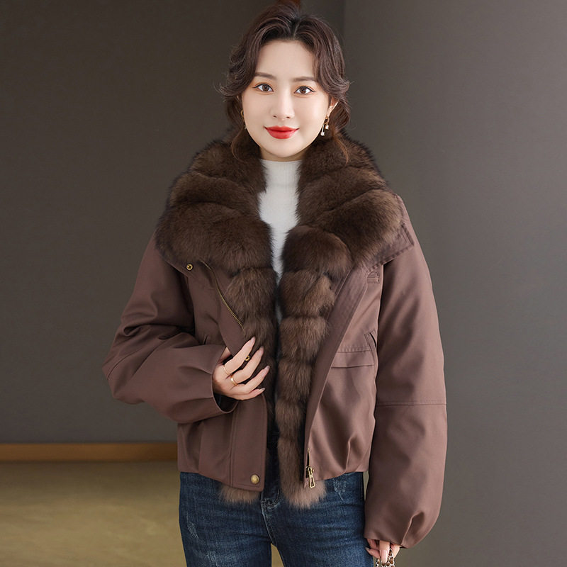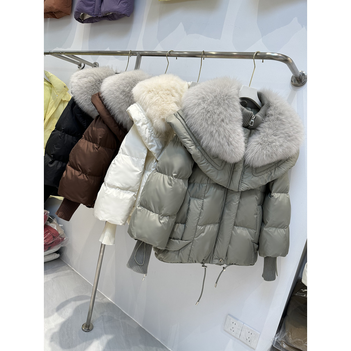 欧货2025冬装大狐狸毛领皮草羽绒服女短款小个子白鹅绒皮草外套潮
