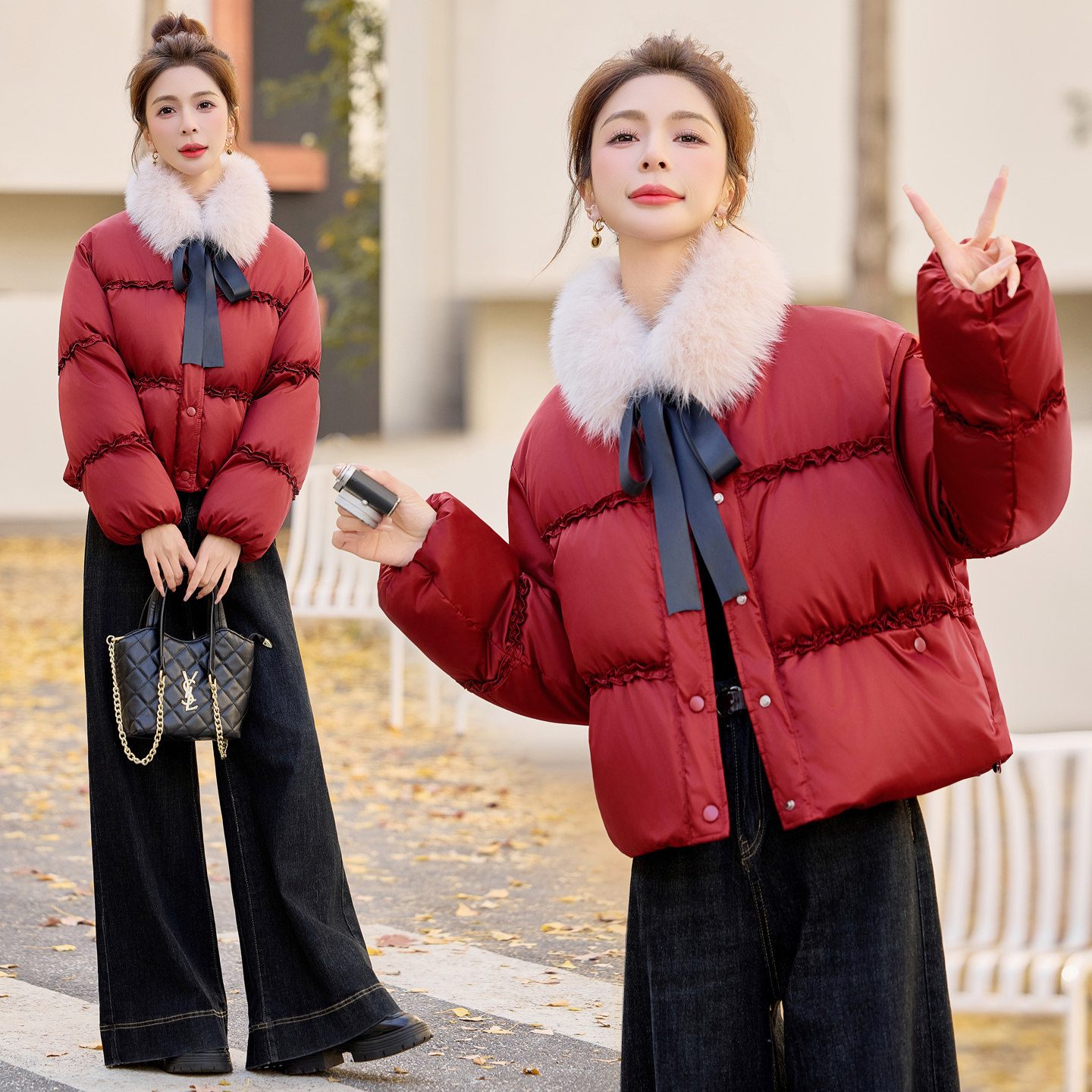 新年圣诞红狐狸大毛领羽绒服女短款2025冬季新款90白鸭绒保暖外套