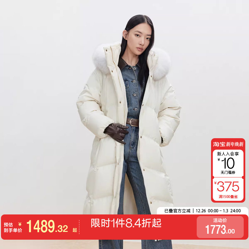 衣香丽影狐狸大毛领羽绒服女冬装连帽中长款2025年新款蓬松感外套