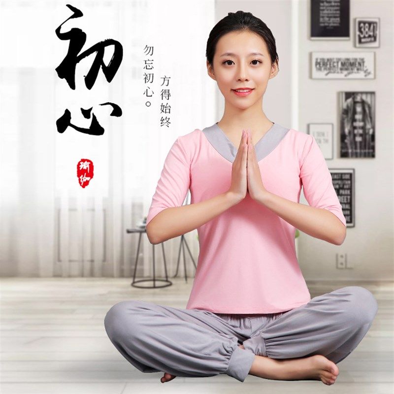 前V领后圆领春夏季广场舞套装显瘦中袖愈加服女灯笼裤瑜珈健身服
