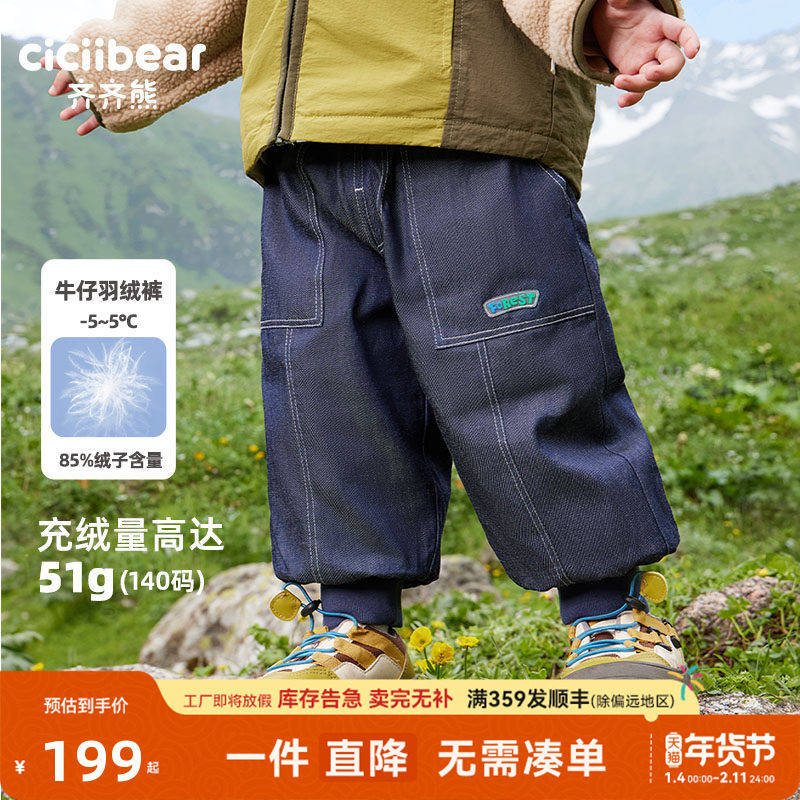 齐齐熊宝宝羽绒裤男女童冬季仿牛仔裤儿童加厚保暖滑雪裤子防寒裤