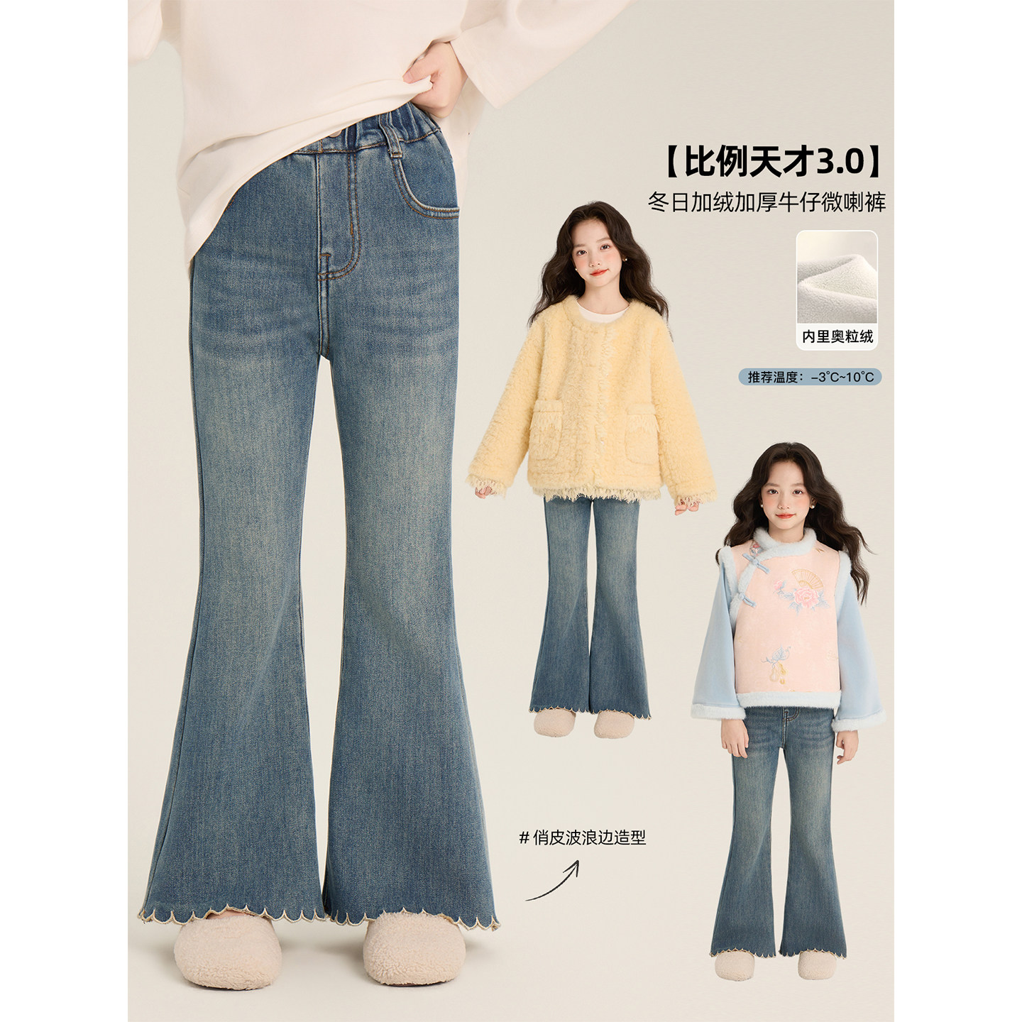 - 女童冬季加绒牛仔裤
