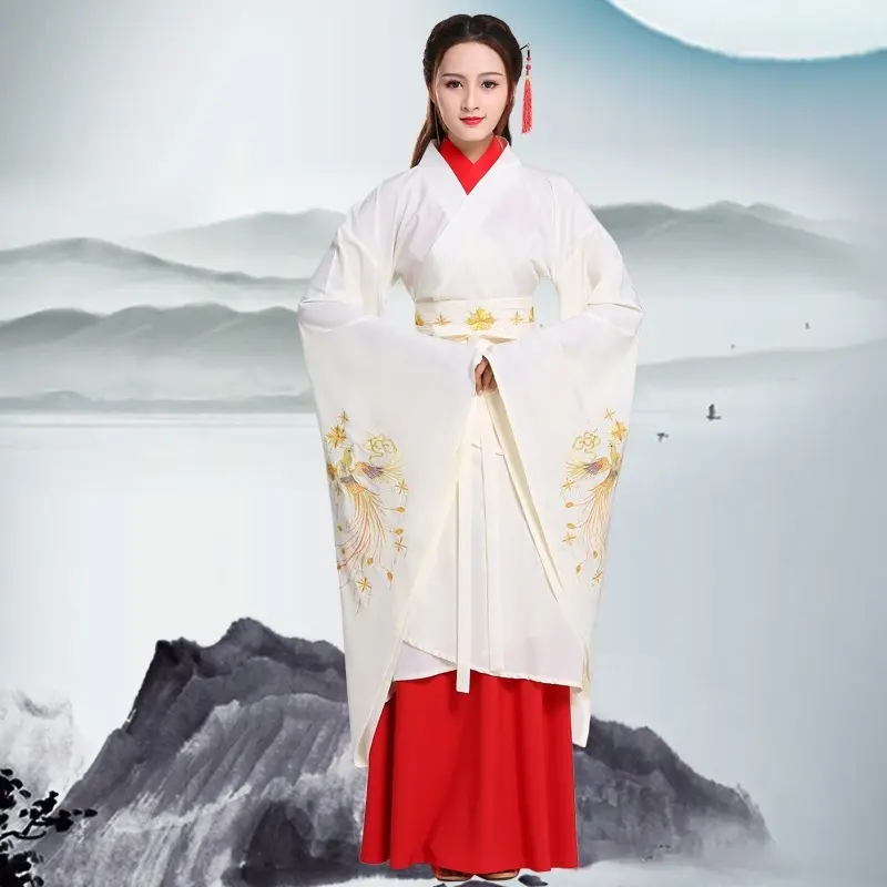 汉服女古装仙气飘逸古风超仙交领汉服仙女中刺绣演出服夏现货男棉