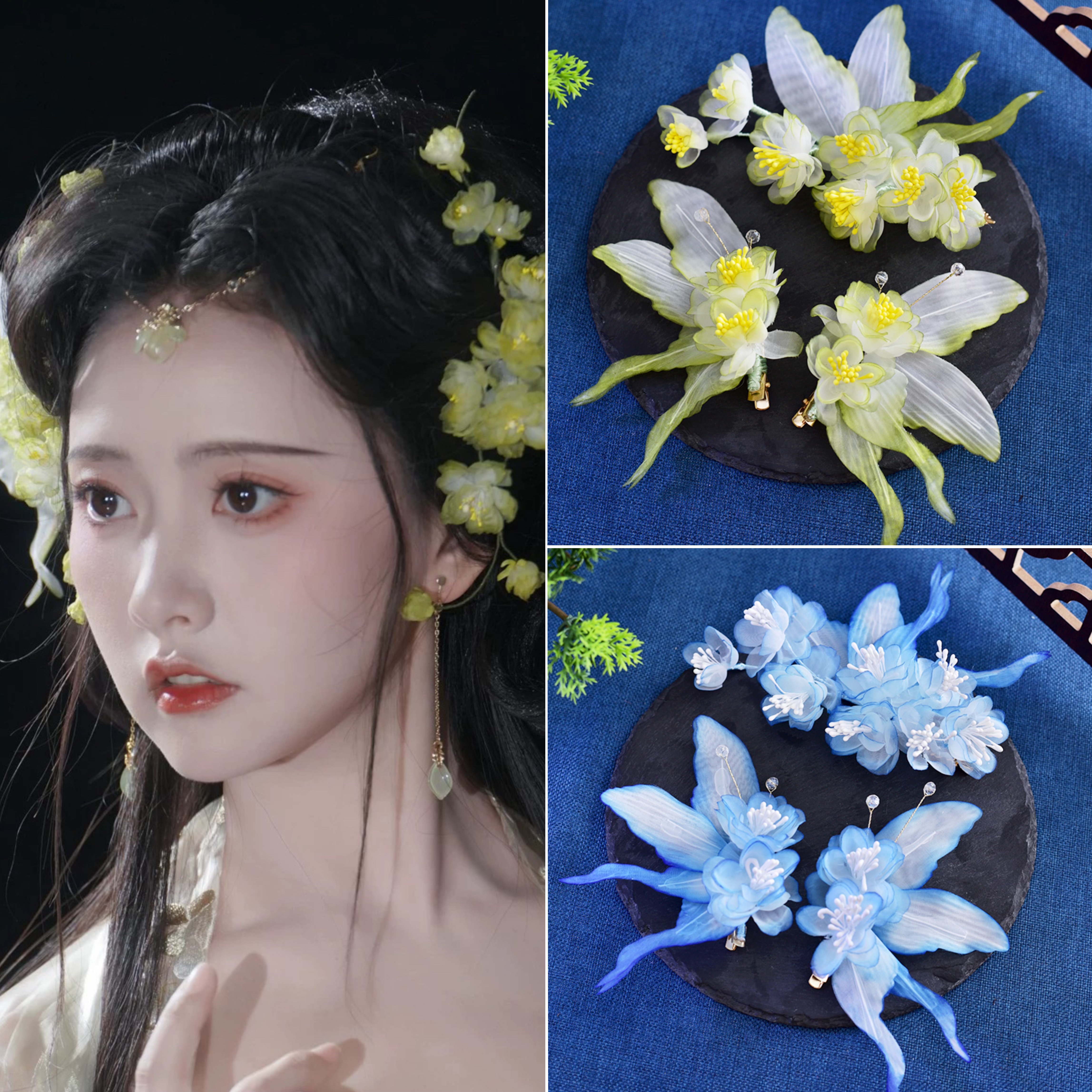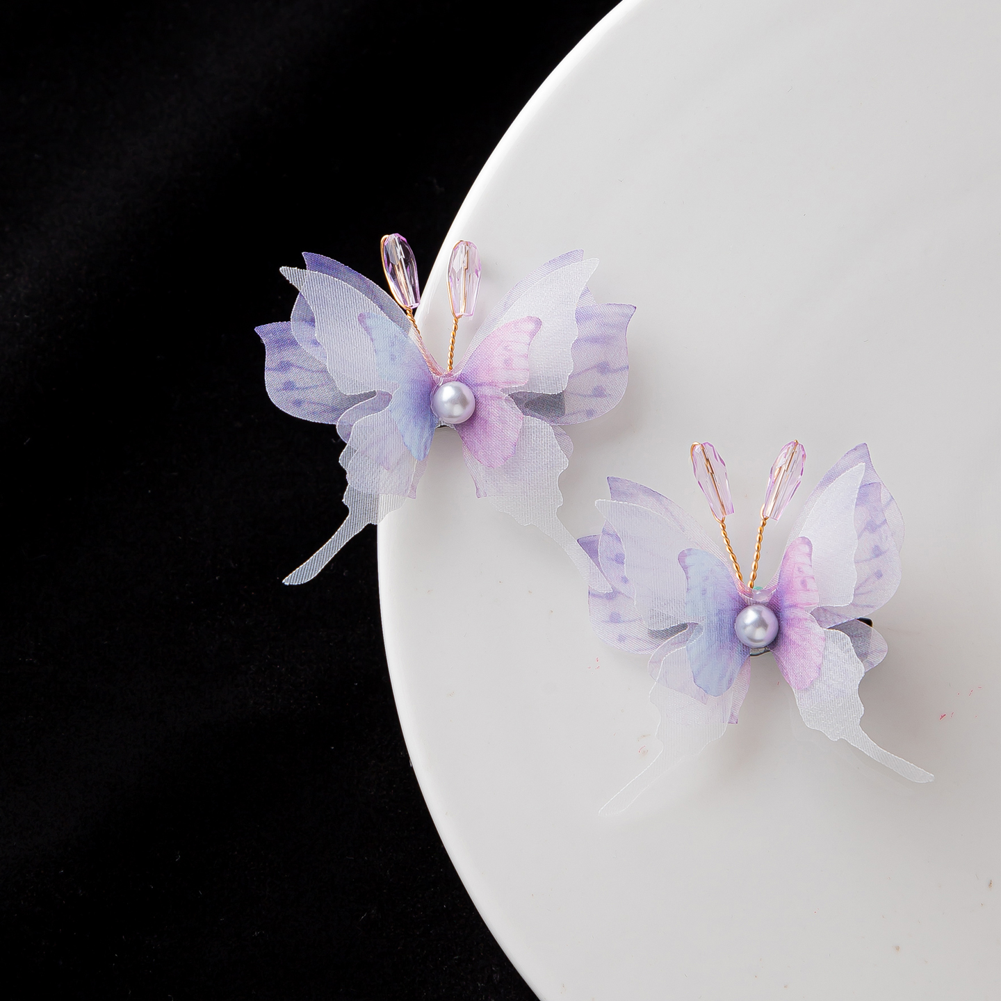 古风女发饰汉服鞠婧祎烫花绢花蝴蝶边夹原创手工新款软簪出游头饰