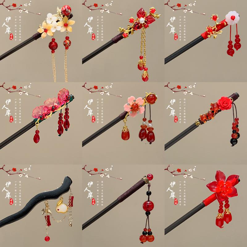 新年红色发簪女2025新款古风簪子发饰马面裙头饰高级感汉服配饰