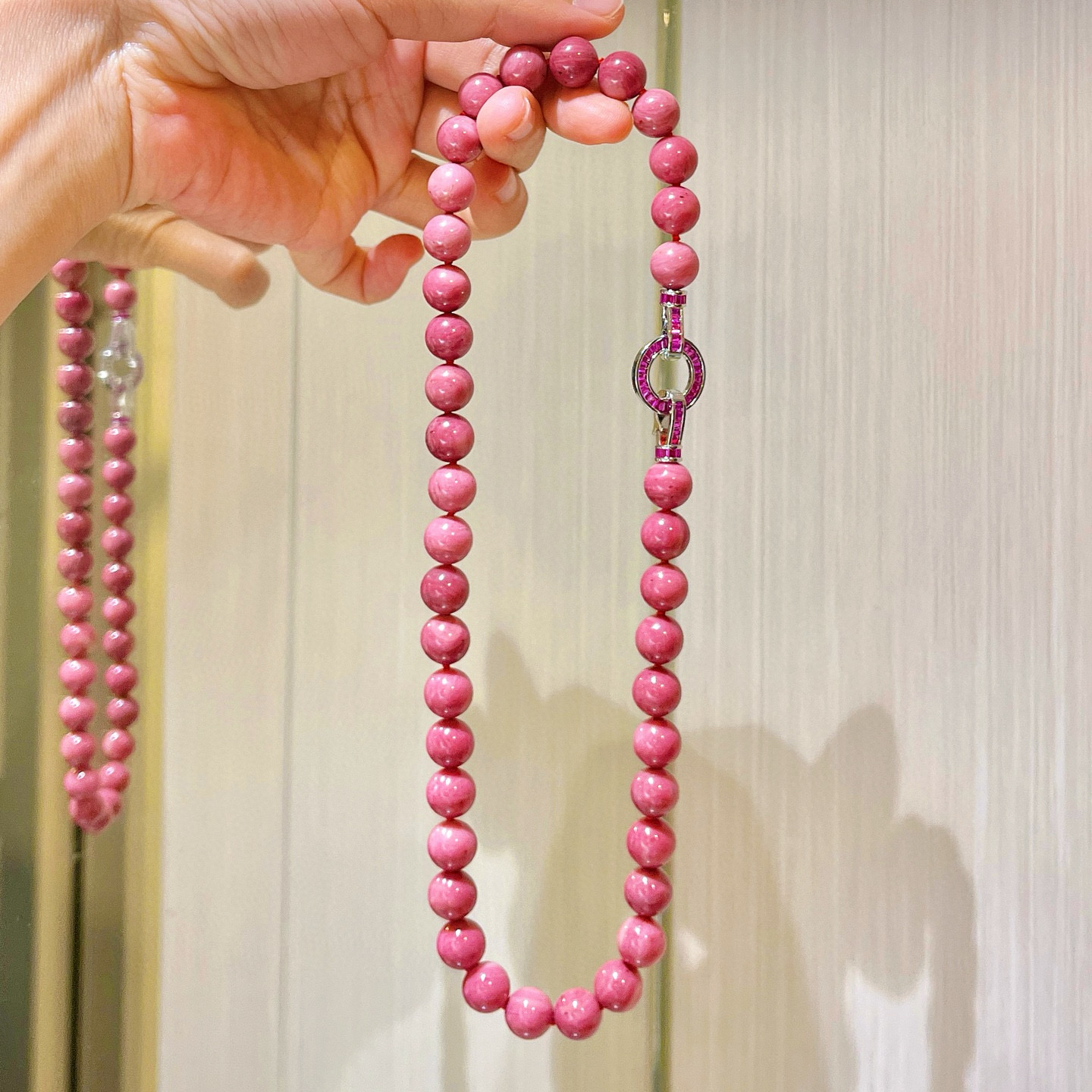 10mm高品质5A天然红木纹项链复古中古风粉红色珠圆珠串珠锁骨链