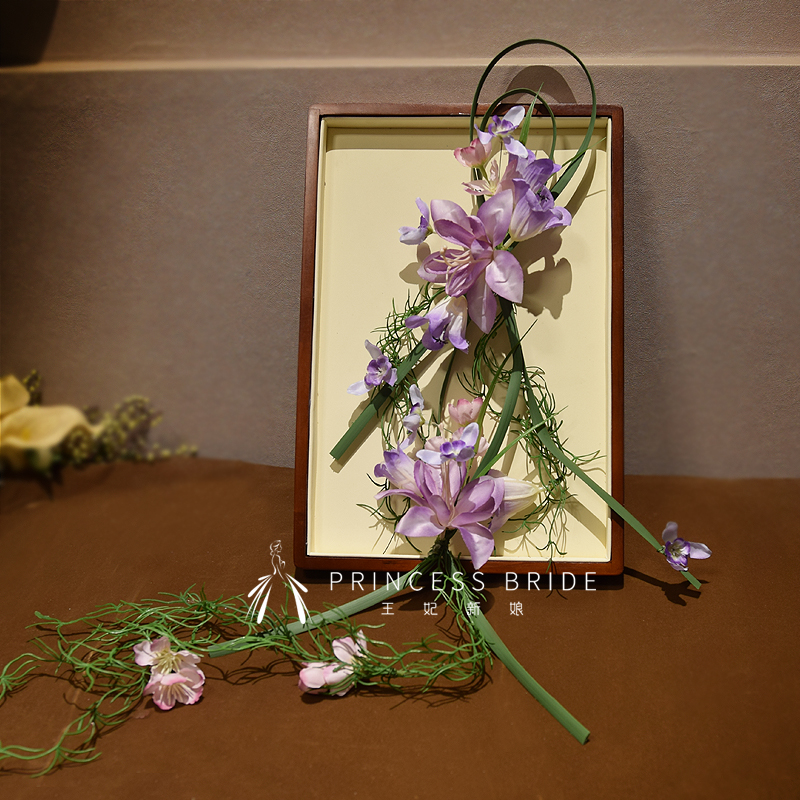 新品2025仙美紫色花花藤编后区盘发造型古风外景拍照写真盘发头饰