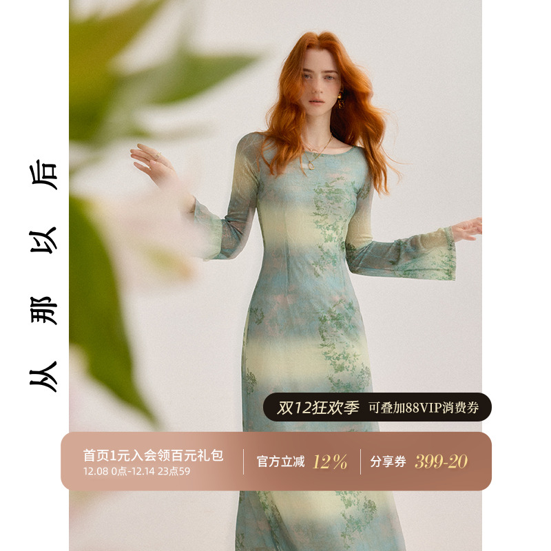 从那以后法式复古风连衣裙长袖小裙子高级感碎花裙长裙女秋季穿搭