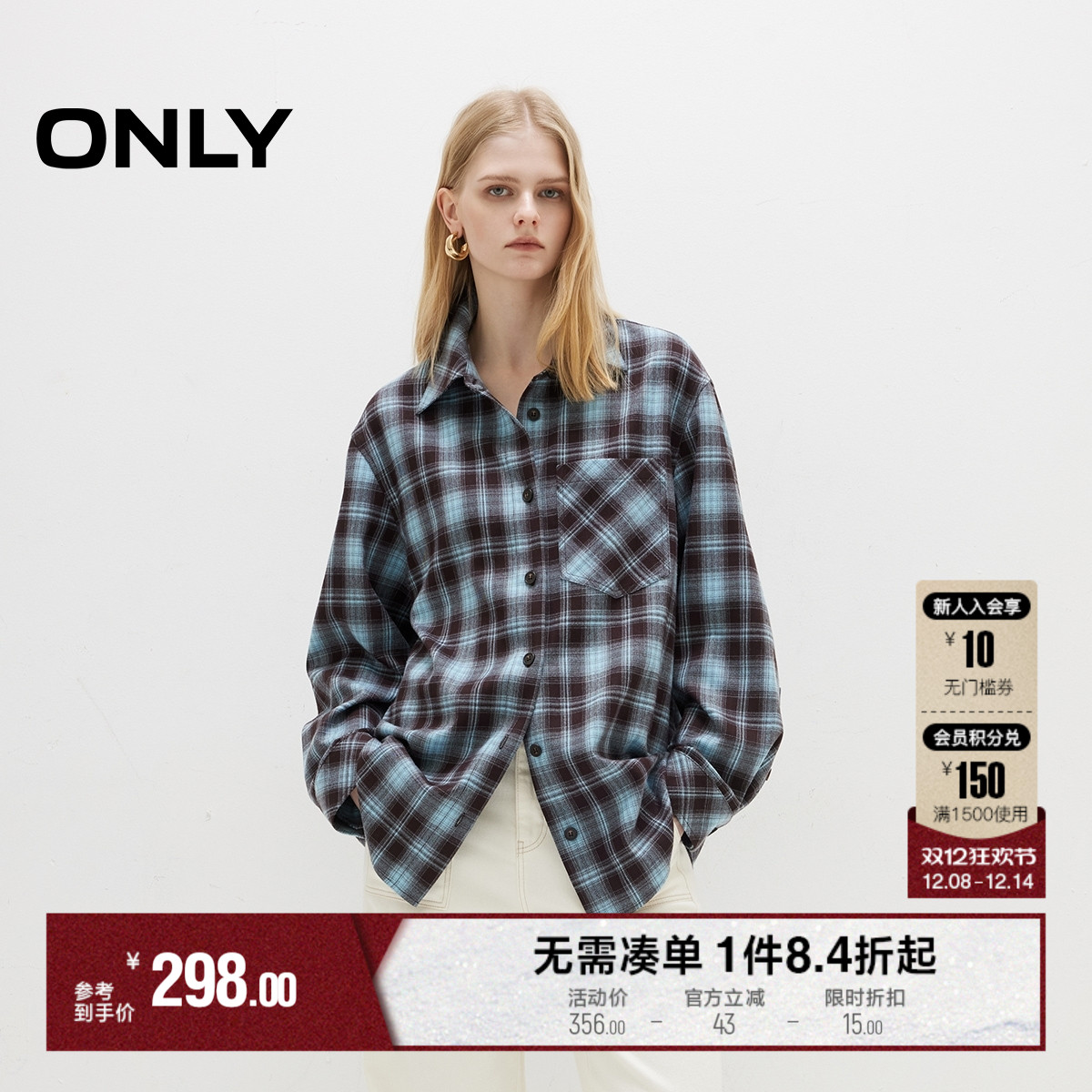 ONLY2025冬季新款宽松格纹美式复古风男友风学院风长袖衬衫女