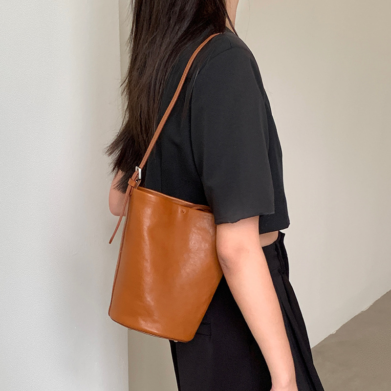 复古风植鞣牛皮水桶包女2025新款极简小众真皮腋下通勤女包斜挎包