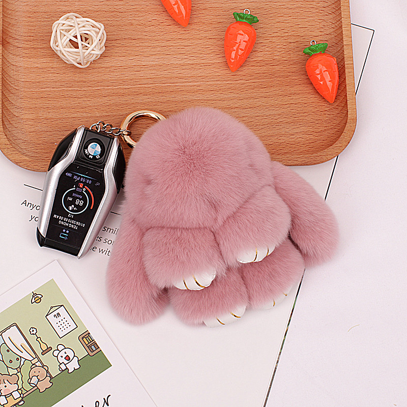真毛毛绒兔子挂件钥匙扣獭兔毛小兔子公仔包包吊坠汽车饰品网红风