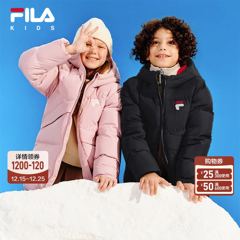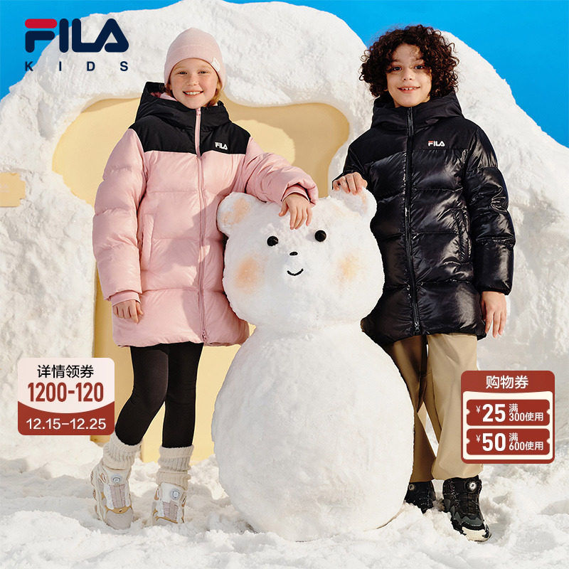 FILA斐乐儿童羽绒服中长款2025冬新款外套男女童防风保暖宝宝冬装