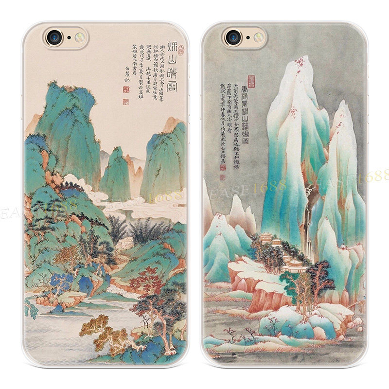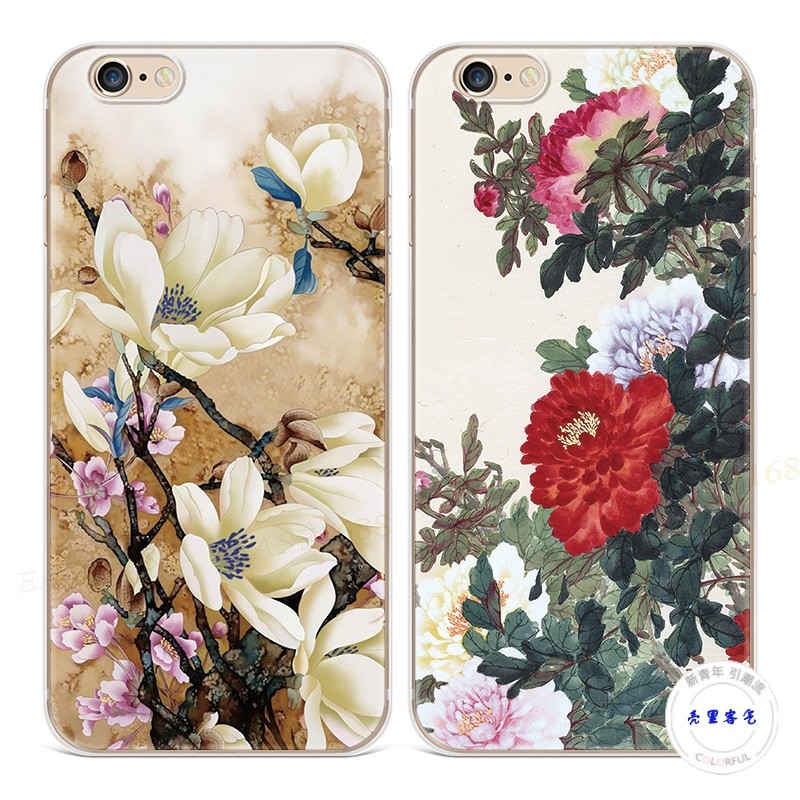 唯美国画适用iPhone8苹果13手机壳7plus复古6s中国风14promax文艺女款软5se第一1二2三3代五六七八