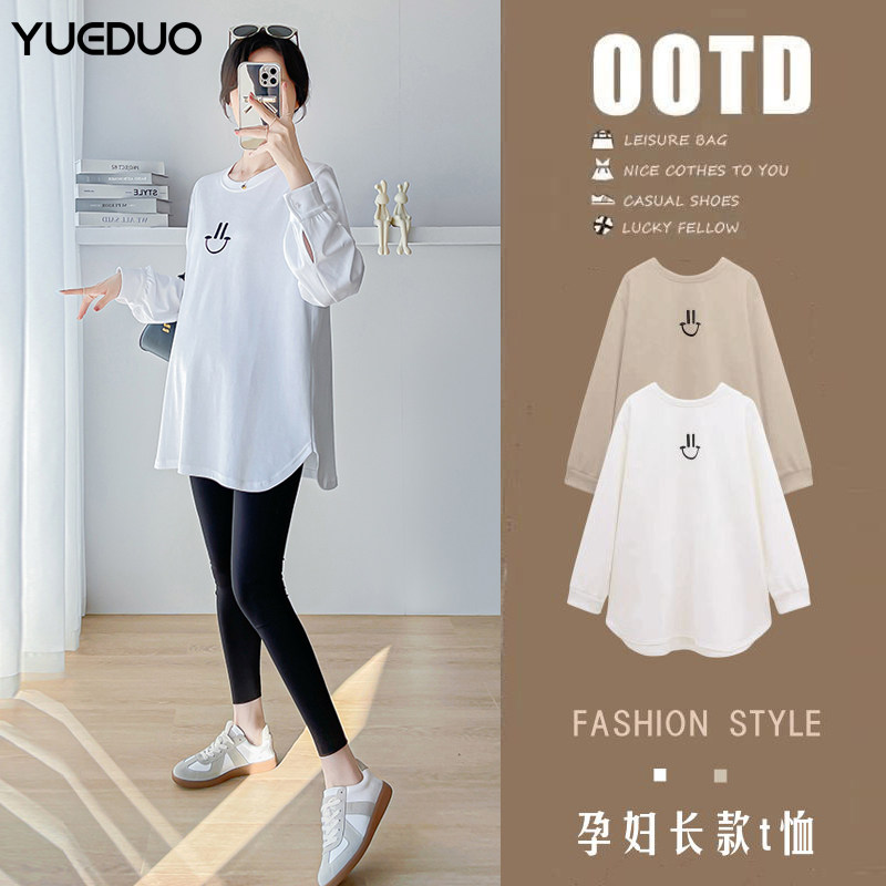 孕妇T恤女e中长款孕妇装春秋新款外穿宽松打底衫长袖遮肚春季体恤