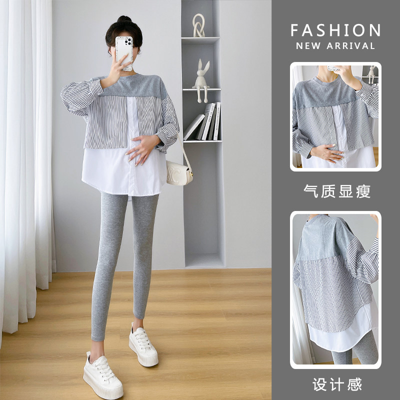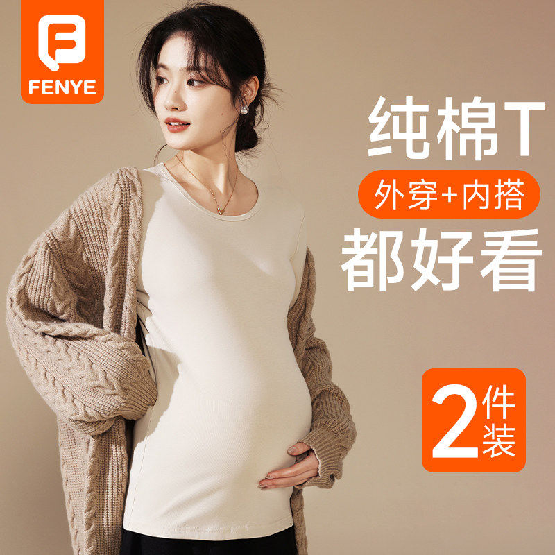 孕妇打底衫春秋新款孕期外穿上衣长袖t恤时尚圆领体恤内搭孕妇装