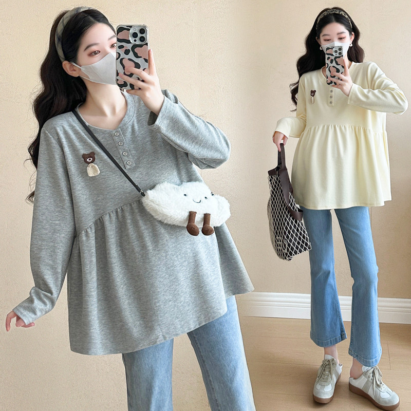 孕妇装t恤秋装套装韩版宽松长袖遮肚甜美减龄纯棉体恤娃娃衫上衣