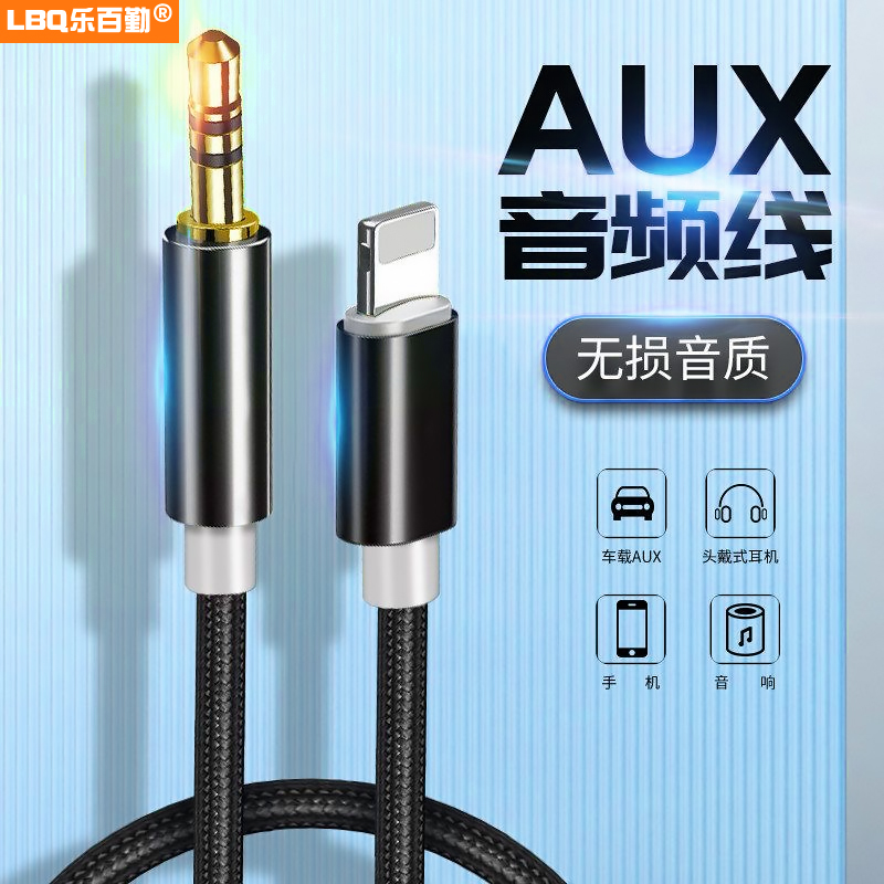 适用苹果aux音频线车载lightning转3.5mm车用转换线mfi认证手机连接汽车音响iPhone13/12/11promaxaus7转接线