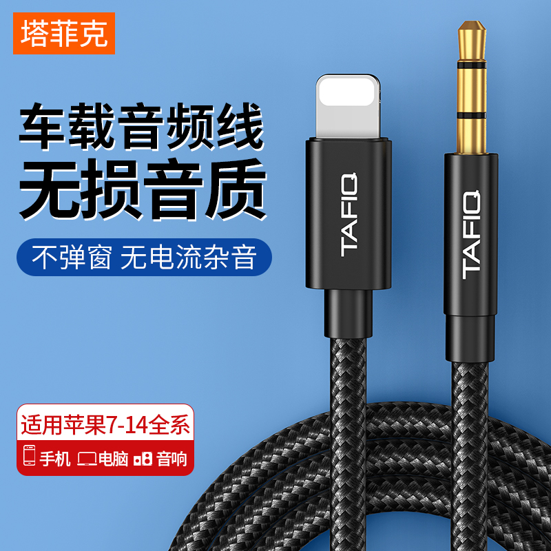 塔菲克适用苹果7车载aux音频线iPhone11车用音频连接12转换x汽车13手机音箱听歌3.5mm公对公转接线aus转接头