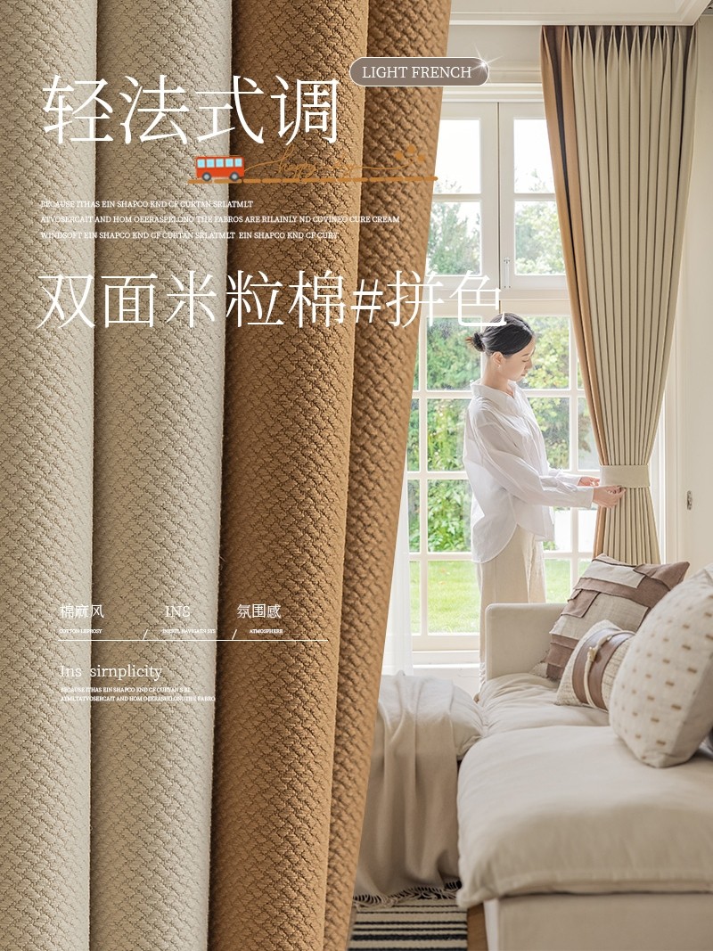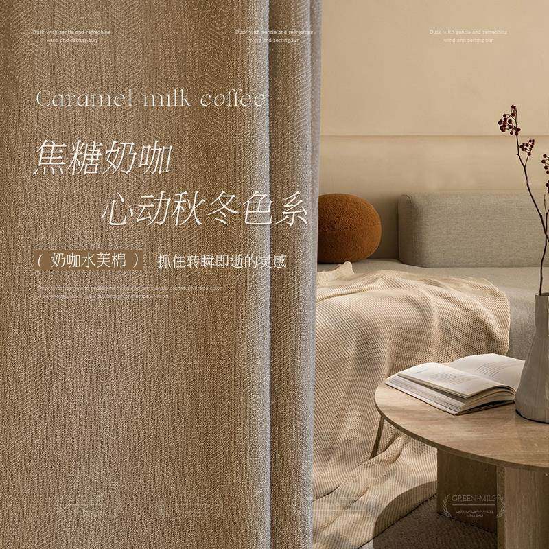 奶咖色棉麻窗帘遮光2024新款卧室全遮光客厅轻奢现代简约布水芙棉