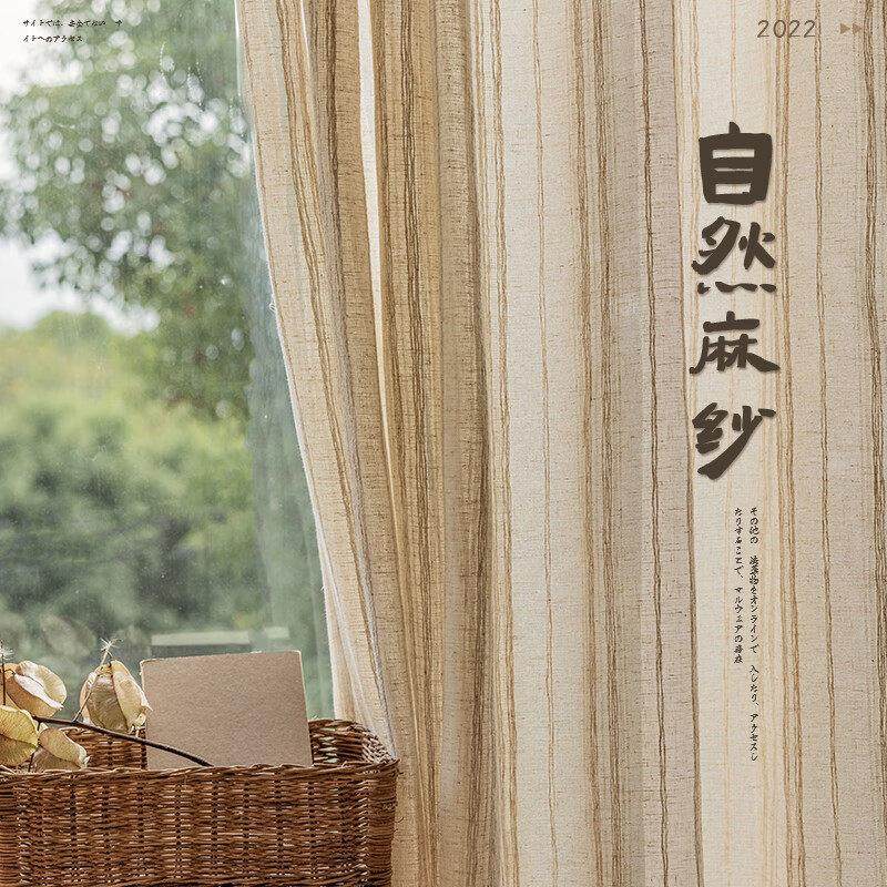 月珑纱亚麻纱帘窗帘遮光麻纱茶室禅意日式棉麻中古风窗纱阳台中式