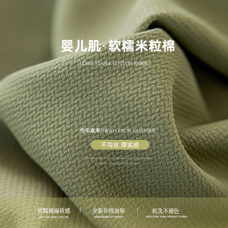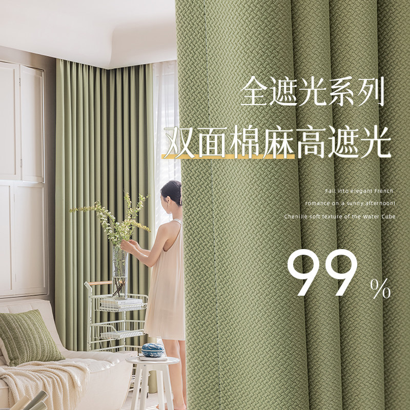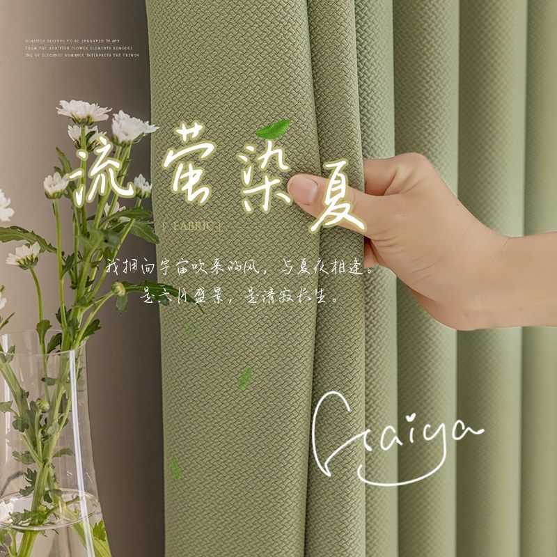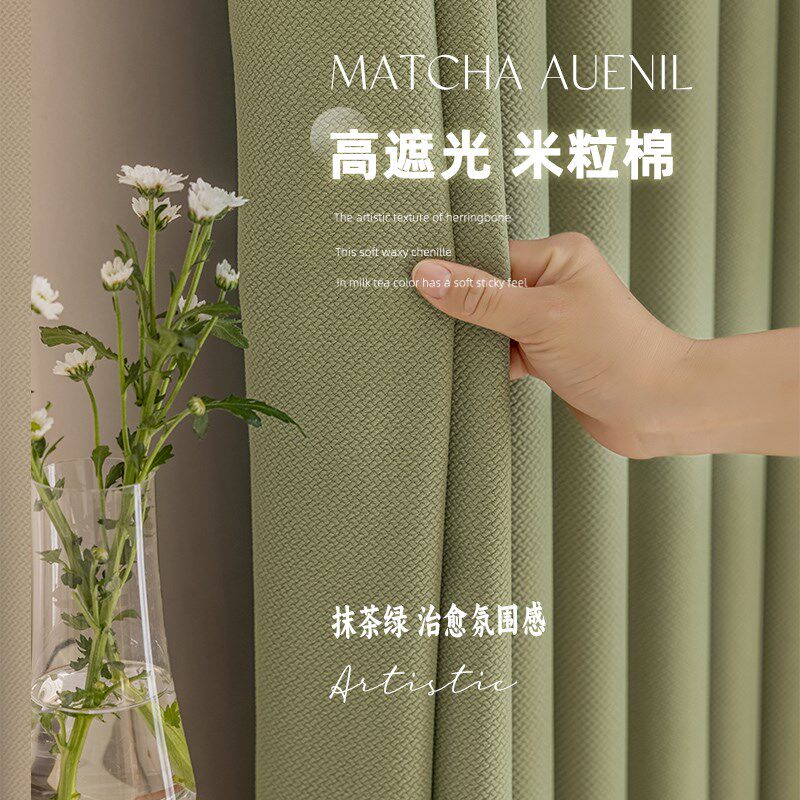 抹茶色米粒棉麻窗帘遮光2023新款卧室现代简约客厅飘窗清新绿色布
