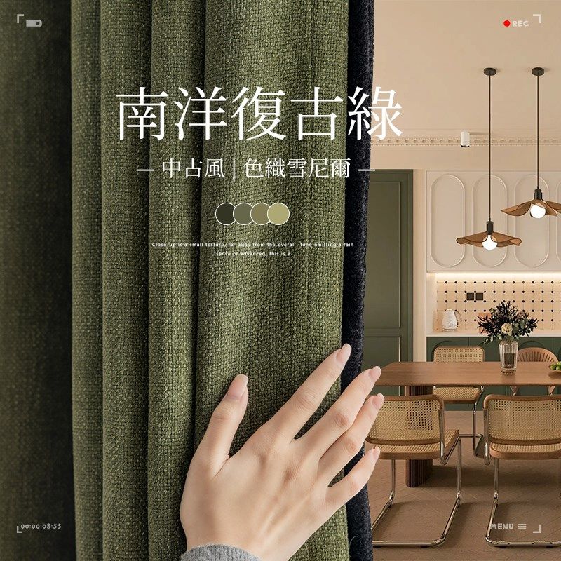 法式中古风雪尼尔南洋复古绿色棉麻窗帘遮光22新款客厅卧室柯桥