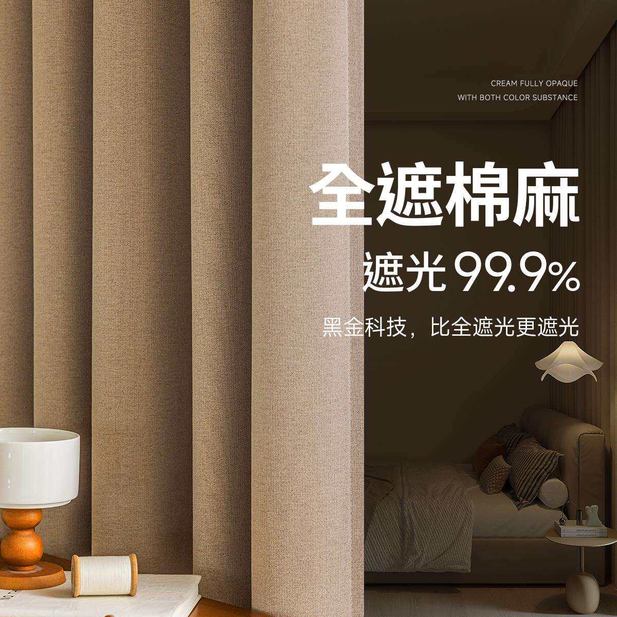 日式棉麻窗帘遮光2025新款绍兴柯桥卧室防晒挂钩式奶茶色窗帘布全