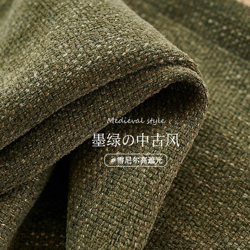 法式中古风雪尼尔复古绿色棉麻窗帘遮光2024新款客厅卧室加厚布料