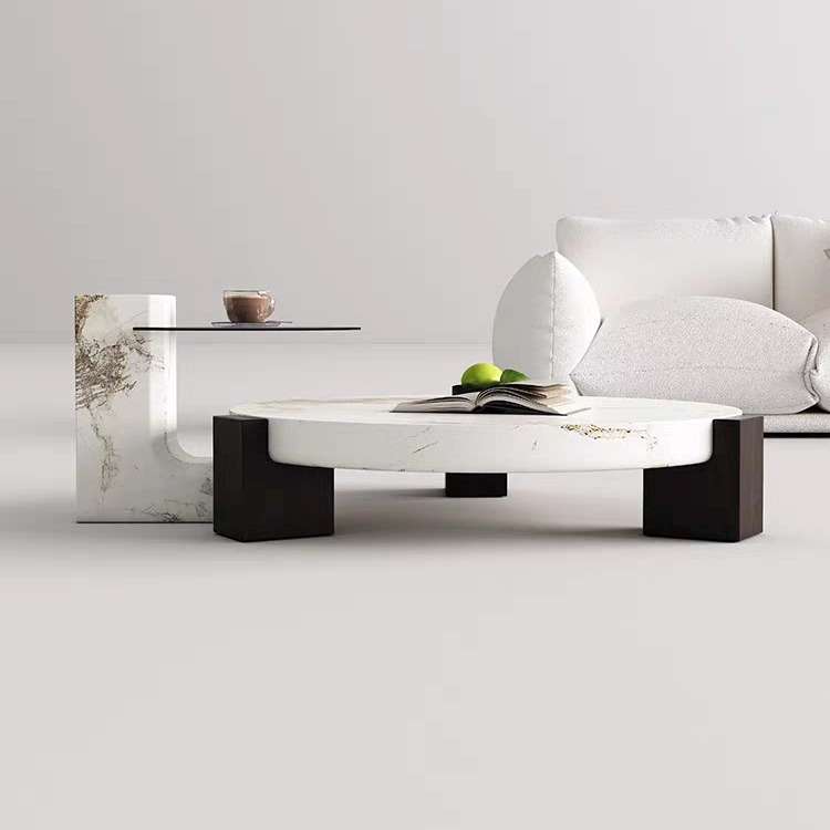 玻璃岩板茶几组合轻奢圆形岩板茶几桌客厅家用现代极简小户型茶几