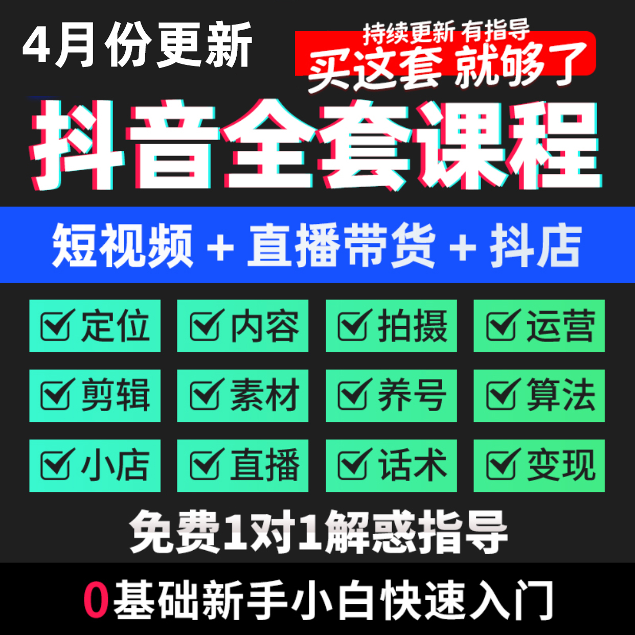 短视频抖音运营教程直播带货话术文案素材自媒体剪辑教程抖音课程