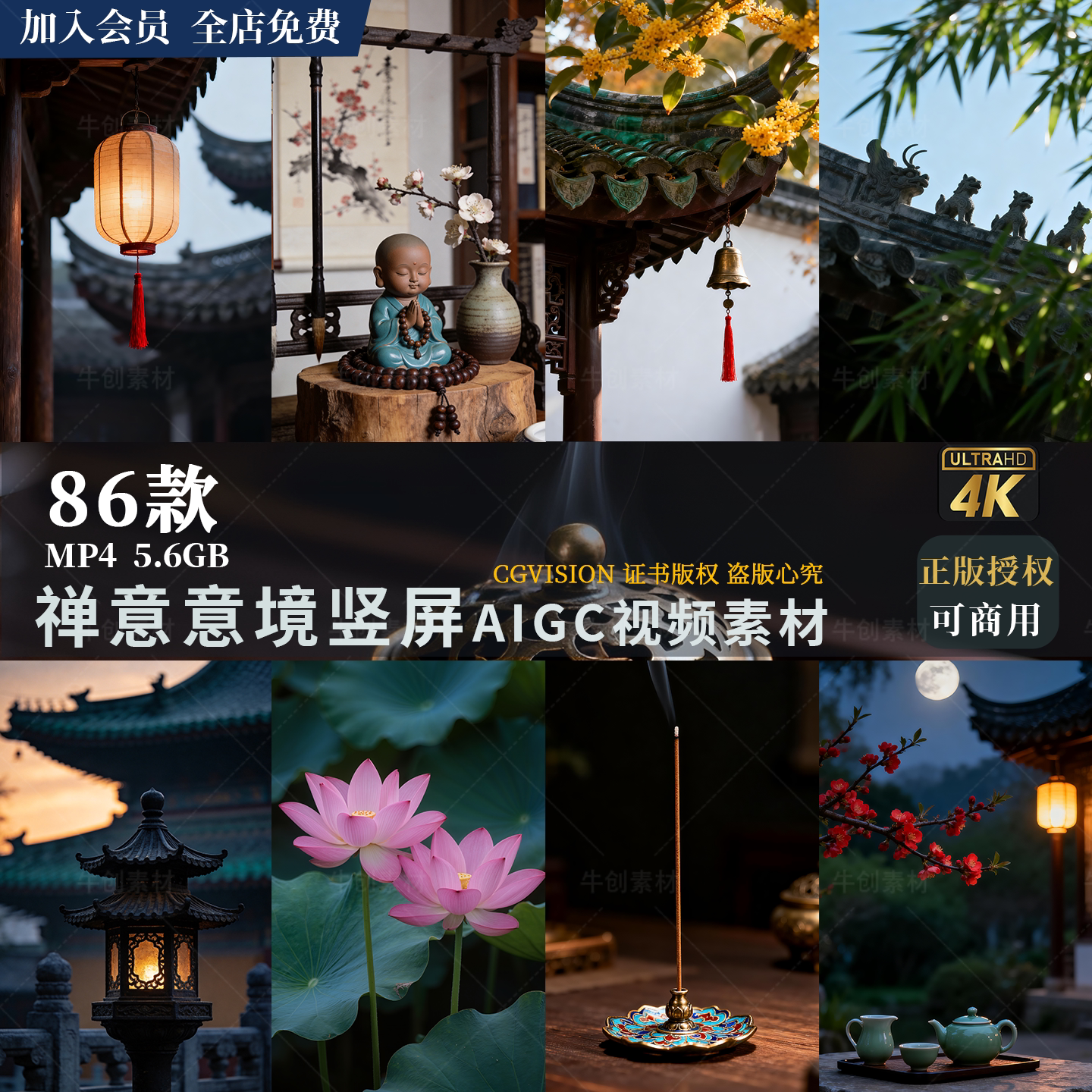 可商用禅意意境古建筑屋檐国风唯美抖音高清竖屏4K自媒体视频素材