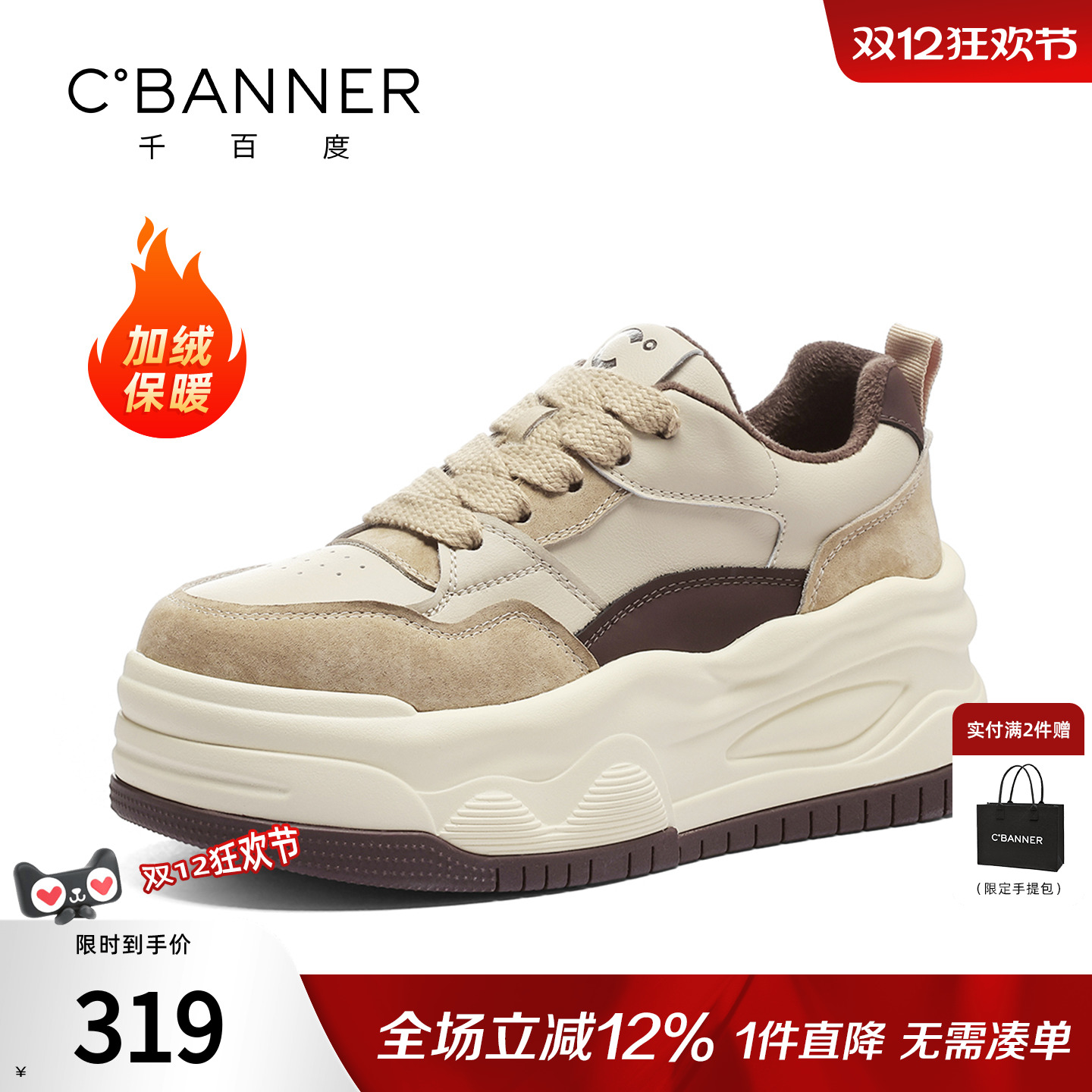 千百度女鞋冬季新款厚底小白鞋加绒棉鞋增高板鞋子女百搭运动女鞋