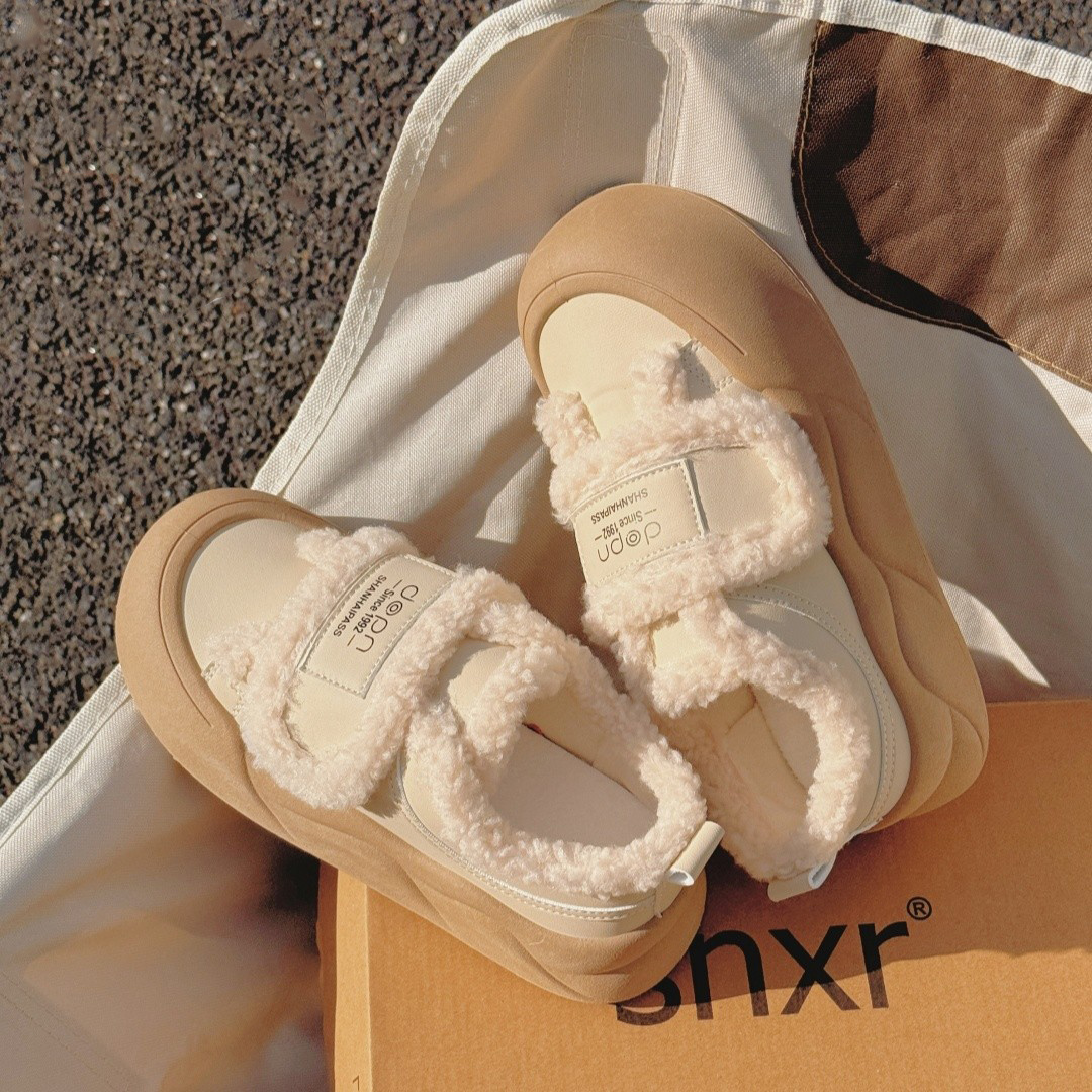 可爱的你 保暖加绒德训棉鞋女2025新款爆款冬季勃肯鞋厚底小白鞋