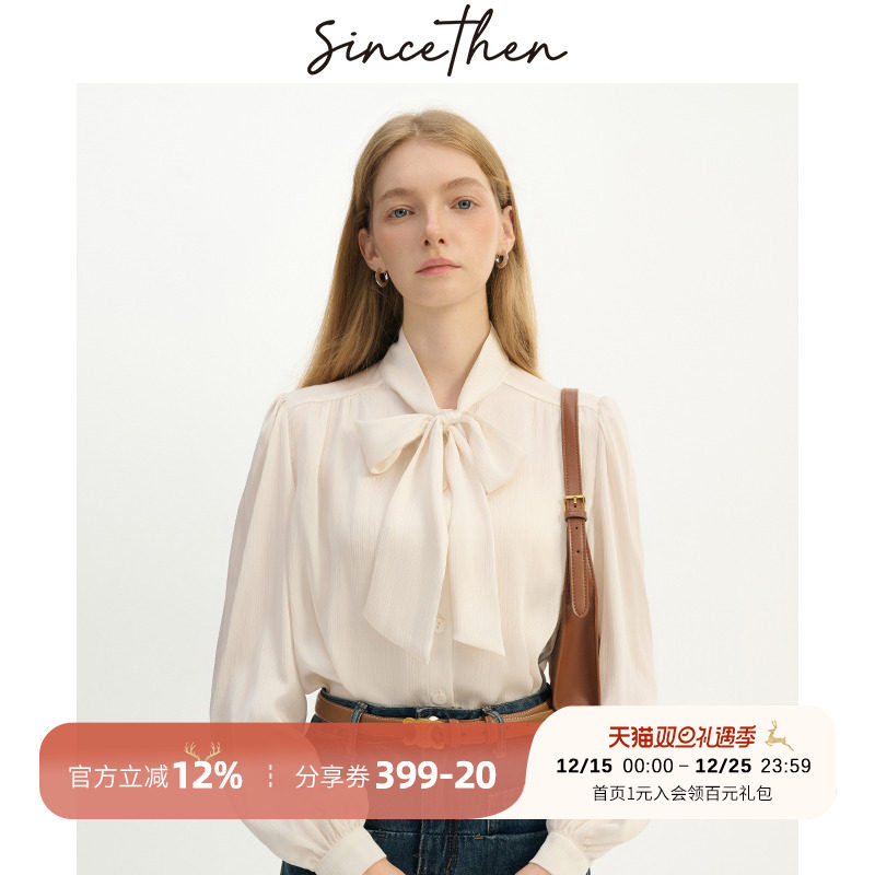sincethen 蝴蝶结衬衫小香风上衣雪纺衫飘带法式白内搭白色衬衣女