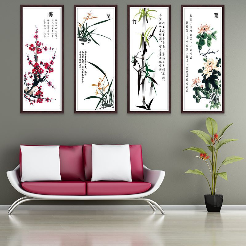 梅兰竹菊挂画客厅沙发背景墙装饰画新中式四联茶室办公室壁画墙画