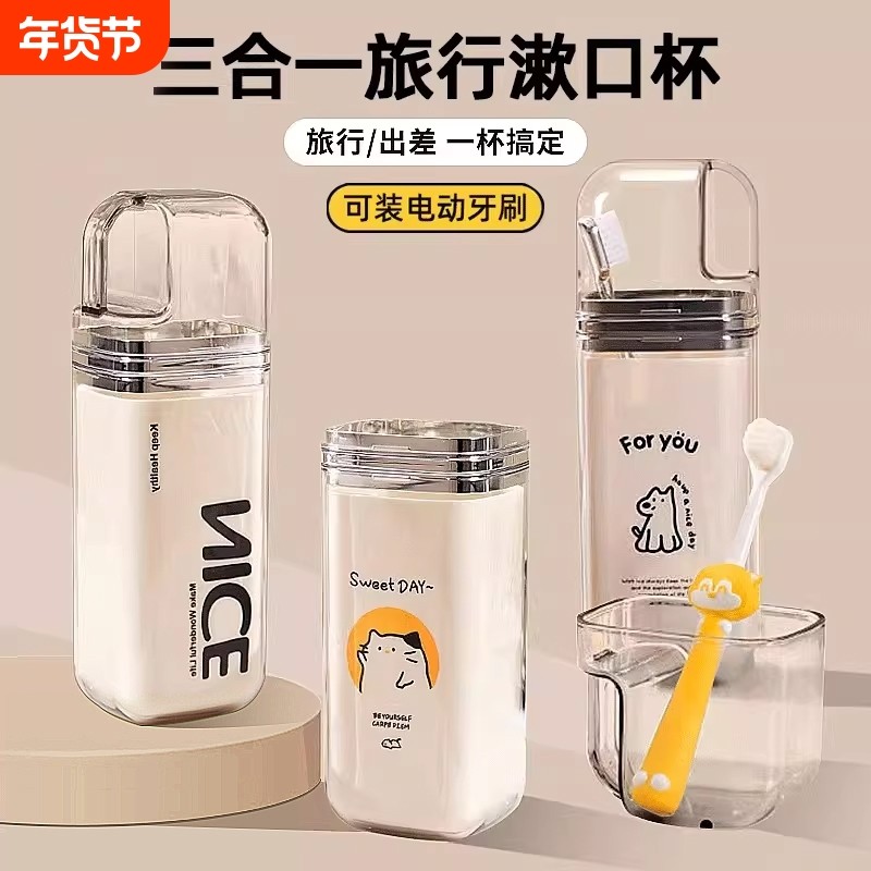 旅行洗漱杯三合一便携式牙刷牙膏牙具套装漱口用品食品级收纳旅游