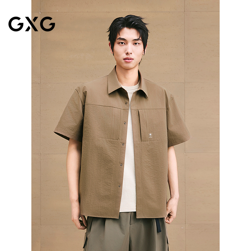 GXG男装 轻工装短袖衬衫户外休闲衬衣通勤男薄外套 2025夏季