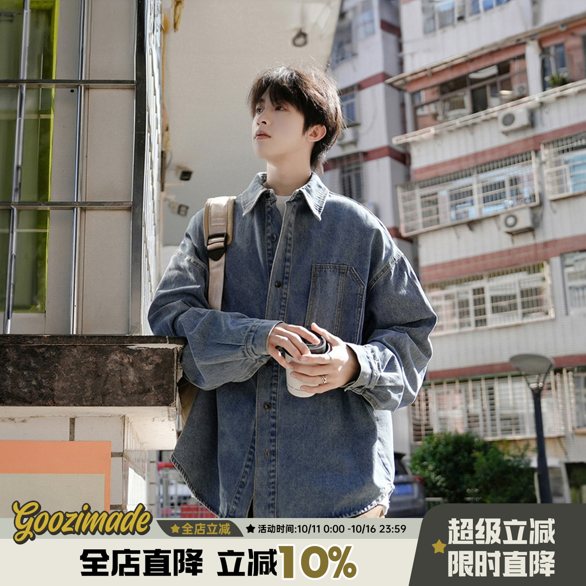 @港仔文艺男 美式工装牛仔衬衫男春秋季潮流男生休闲长袖衬衣外套