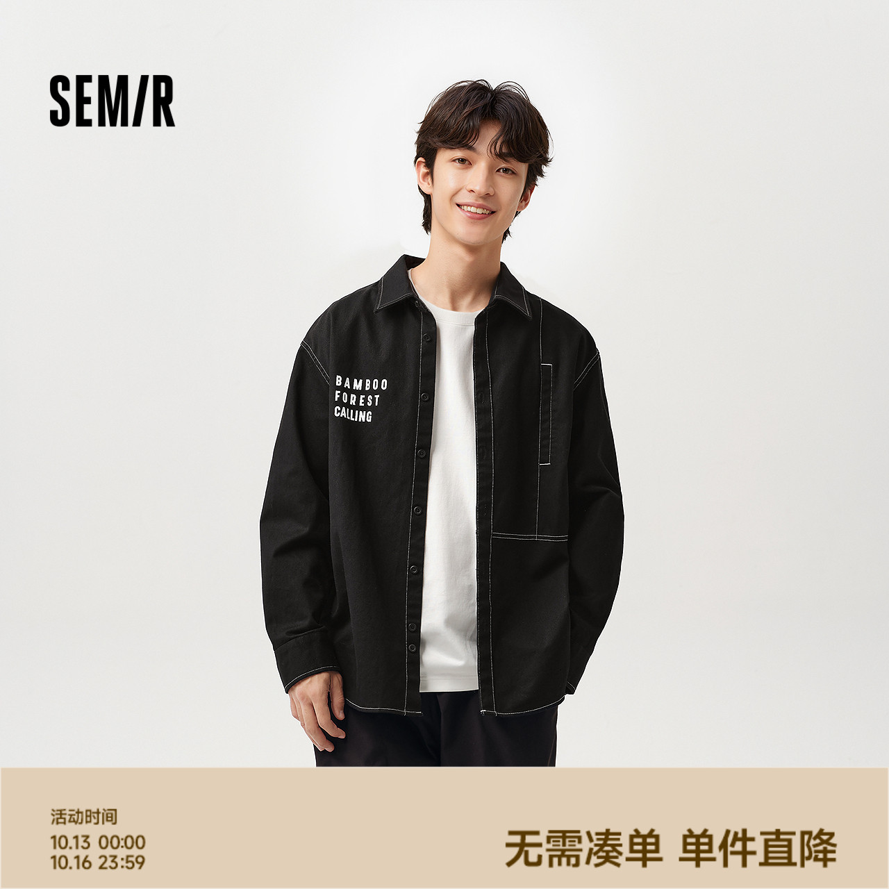 森马长袖衬衫男山系户外轻工装外套春季宽松纯棉上衣印花时尚潮流
