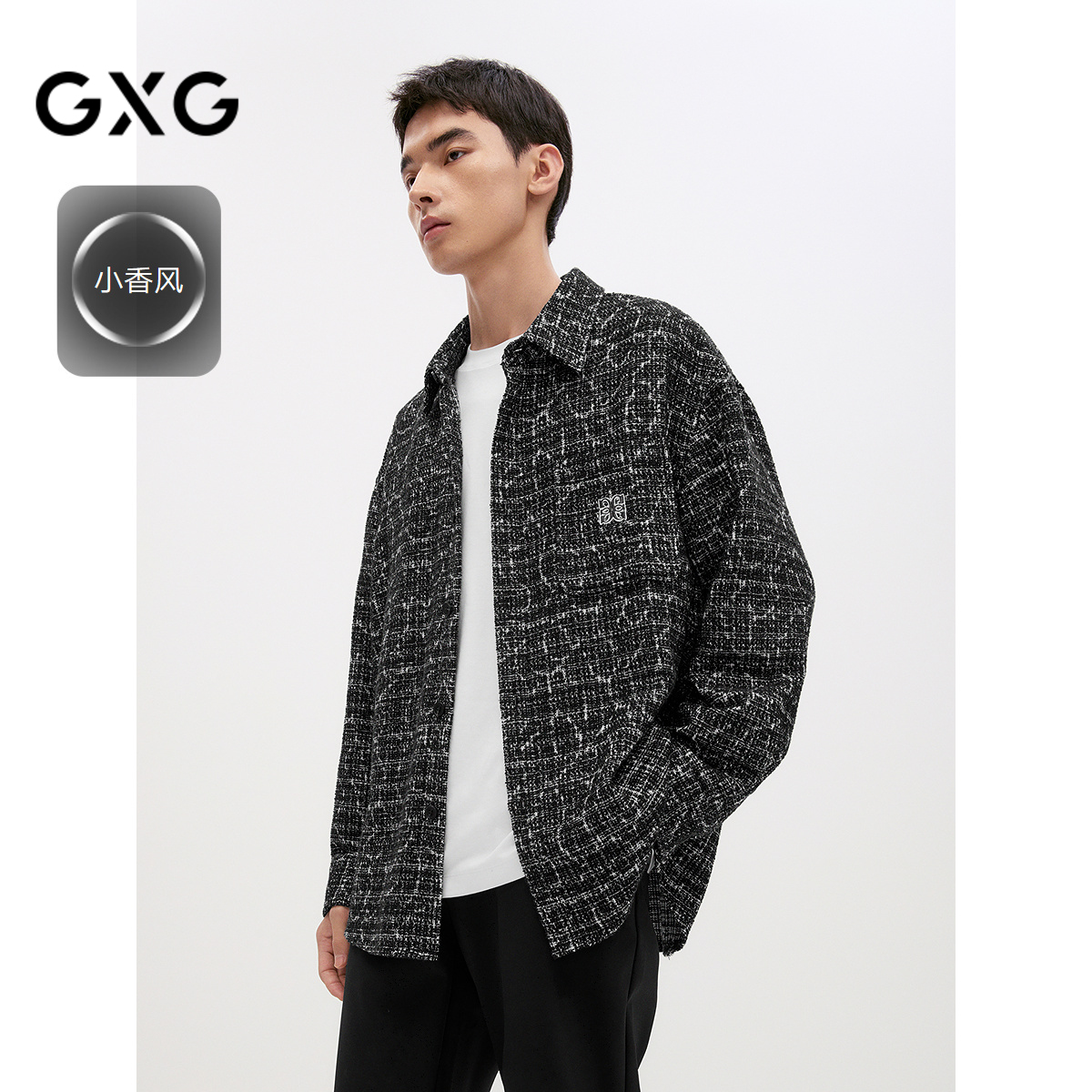 GXG男装 黑色小香风绣花长袖衬衫夹克外套男士通勤 25秋冬热卖