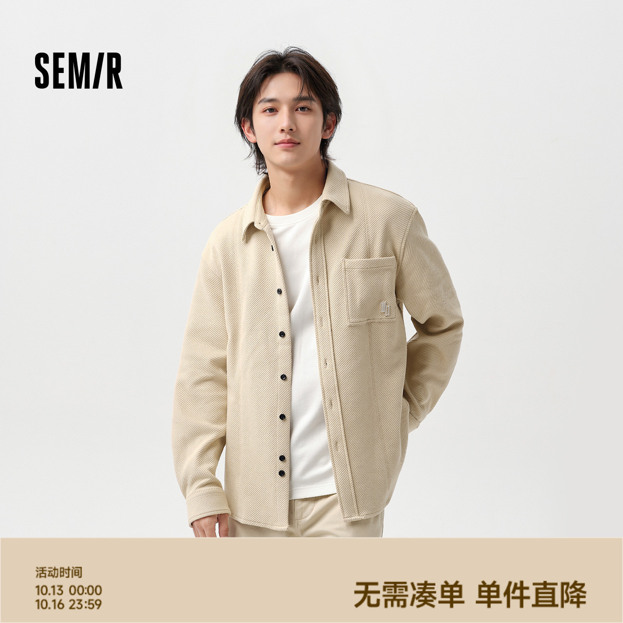森马长袖衬衫男冬季纯色灯芯绒衬衣绣花绒感外套简约百搭通勤上衣