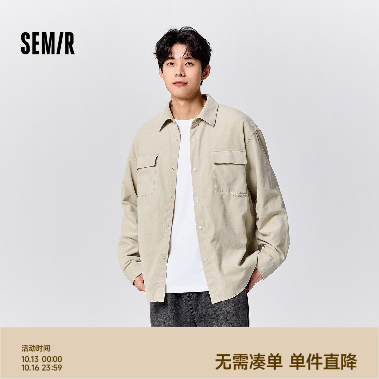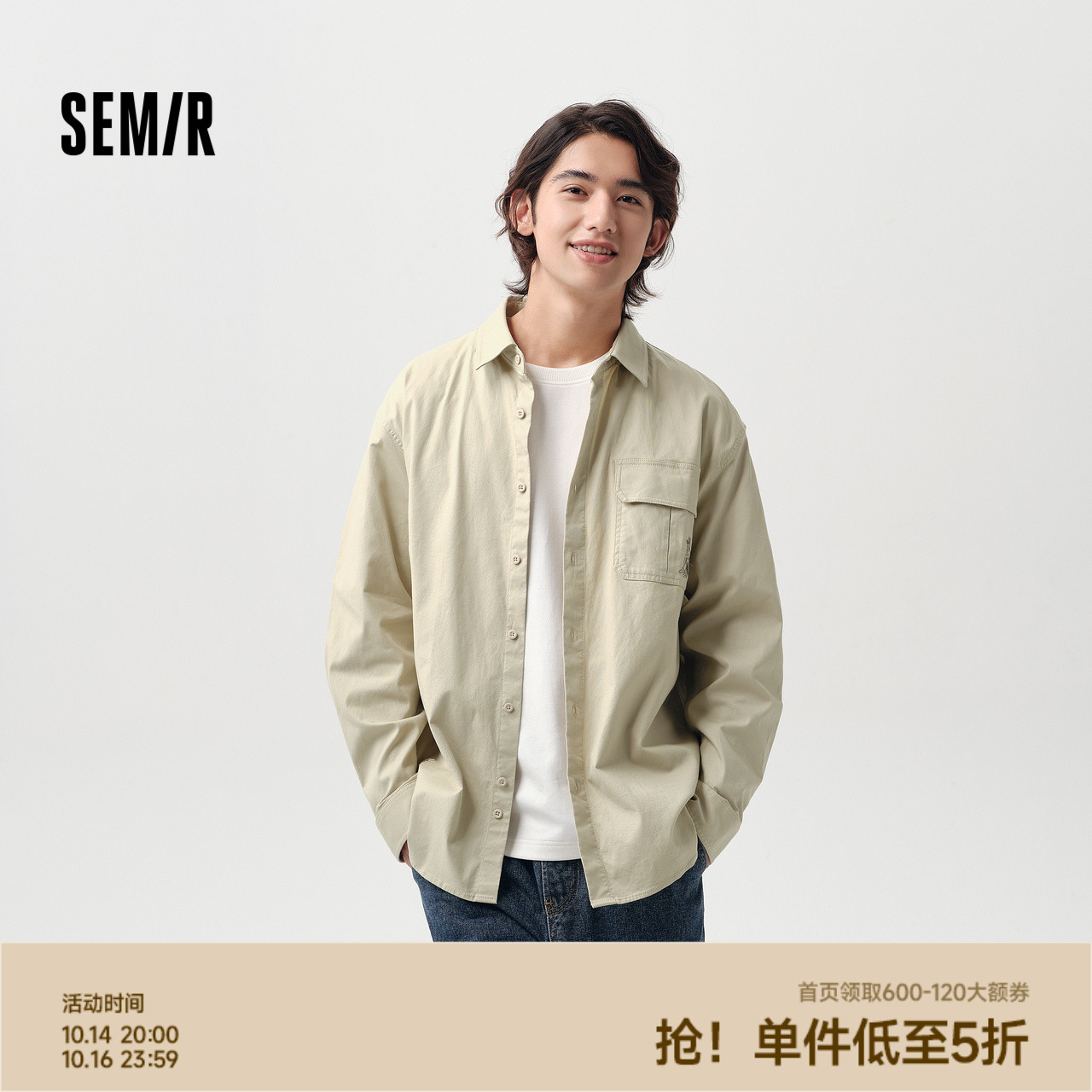 森马长袖衬衫男外穿式山系户外工装外套宽松纯色百搭秋装翻领上衣
