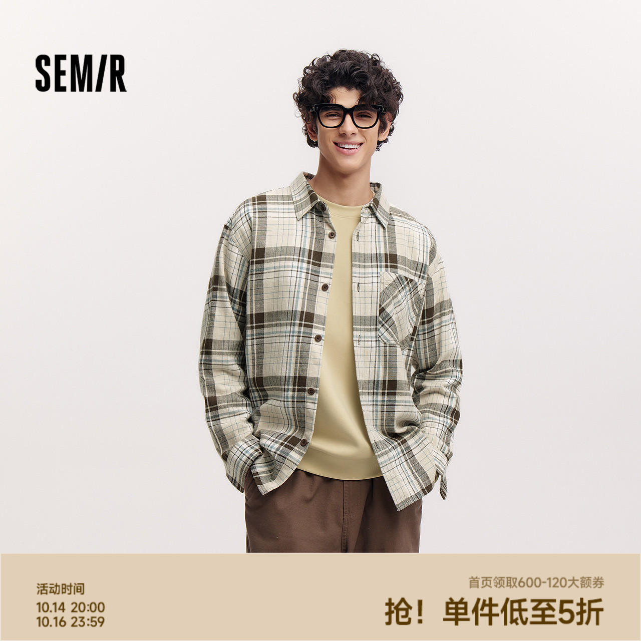[商场同款]森马长袖衬衫男纯棉格纹外套2025春季新款上衣宽松百搭