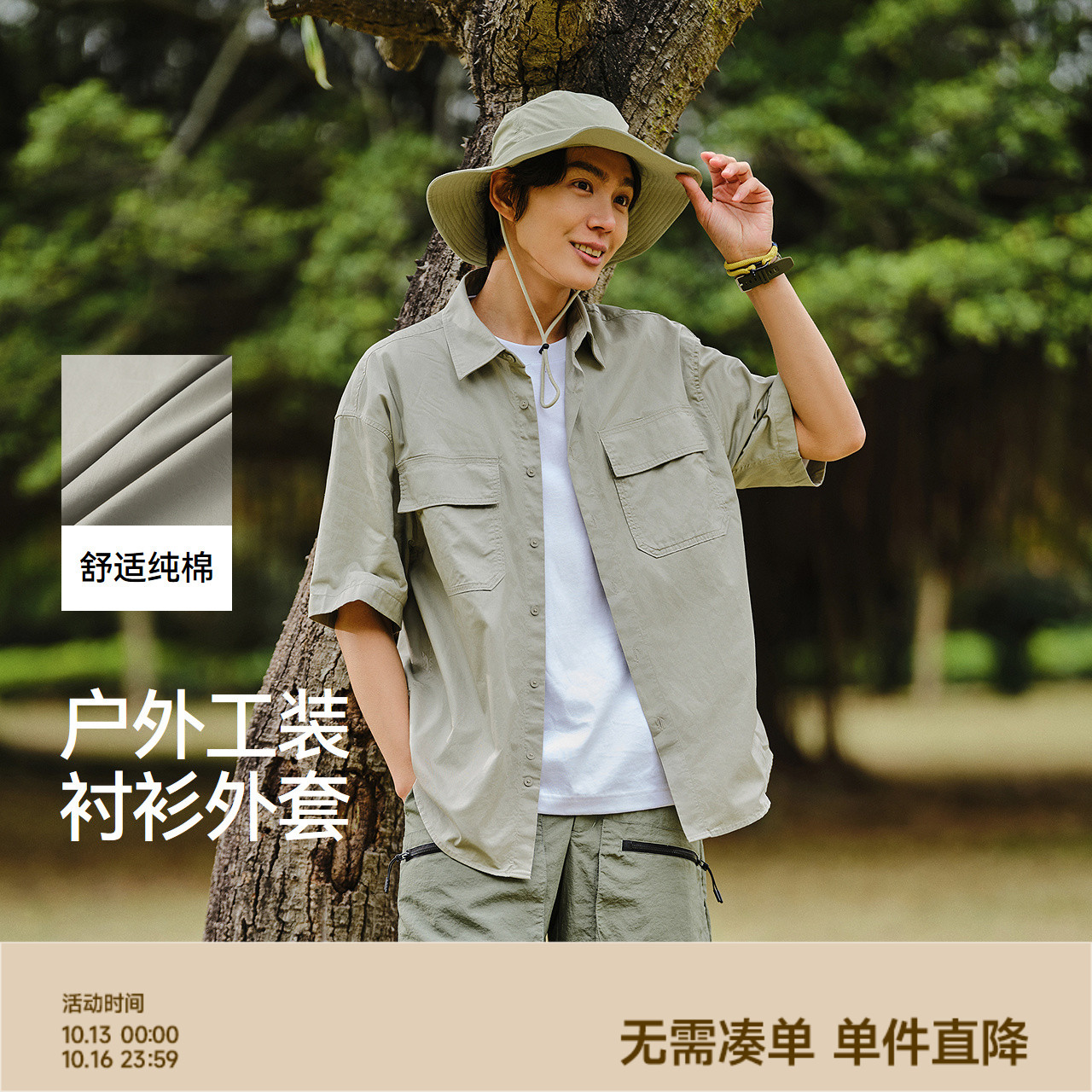 森马短袖衬衫男2025秋款纯棉宽松衬衣外套户外工装做旧水洗上衣