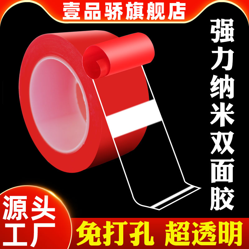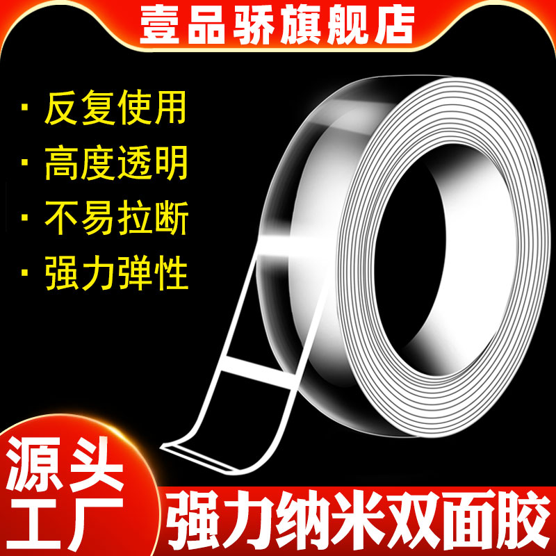 壹品骄网红同款万次纳米魔力双面胶带 强力超薄透明不留胶 居家车用双面胶卷固定墙面高粘度双面胶长1m