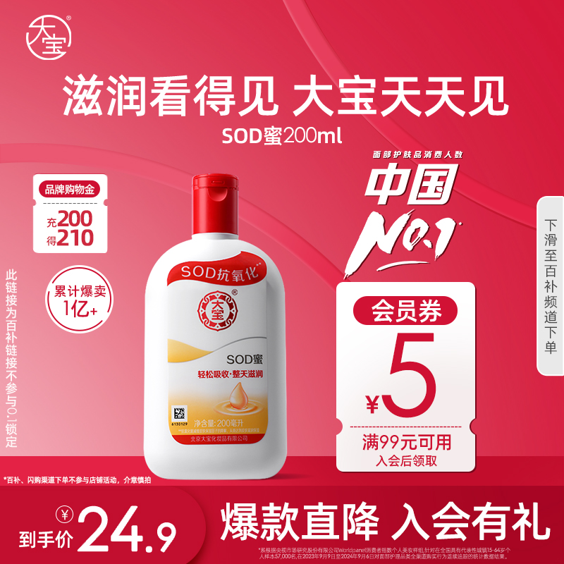 【百补】大宝旗舰店sod蜜乳液面霜补水保湿滋润男士女生护肤品
