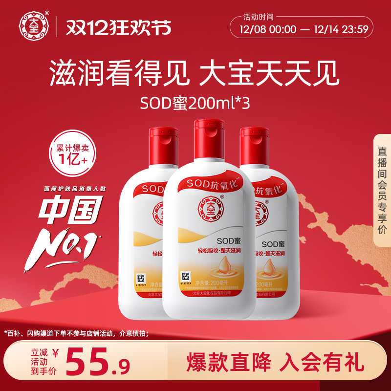 大宝SOD蜜乳液面霜200ml*3补水保湿滋润护手霜男女护肤品正品官方