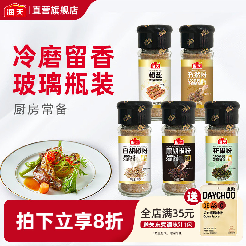 海天黑白胡椒粉 椒盐孜然花椒瓶装香辛料家用牛排撒料蘸料调味品