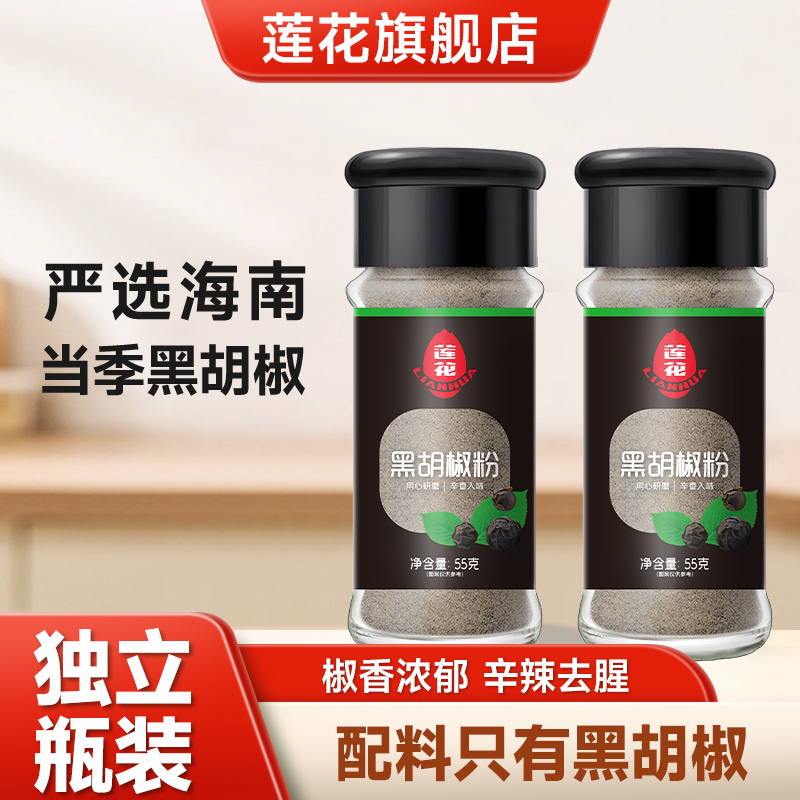 莲花黑胡椒粉55g瓶香辛料正宗家用牛排撒料蘸料调味品官方旗舰店