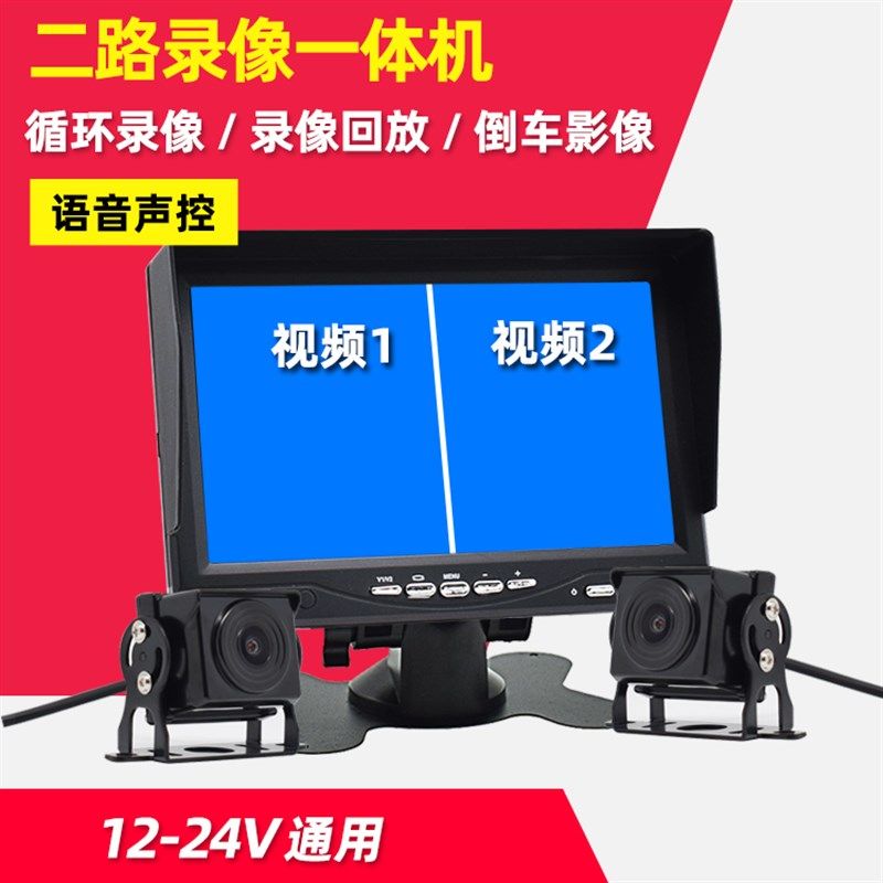 货车四路监控高清24Vr车载收割机倒车影像声控一体机记录仪显示屏